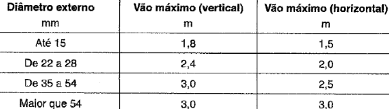 Vão máximo entre os suportes de tubos: